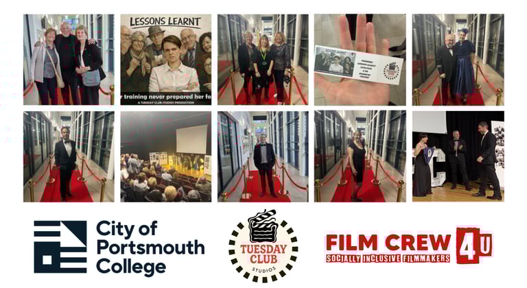 The premiere of LESSONS LEARNT at City of Portsmouth College solidifies a productive partnership between Tuesday Club Studios and Film Crew 4u, highlighting the successful evolution of local creative collaboration and its direct support for the Portsmouth film community.